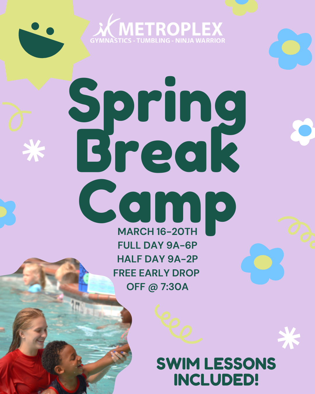 Dive into adventure at Metroplex Swim School, where safety and fun make the perfect splash! Our mission is simple: to equip every child with the skills, confidence, and motivation they need to swim like a pro while prioritizing their safety. Join us in creating unforgettable memories as your little ones transform into not just better swimmers, but safer swimmers. Come make a splash with us!