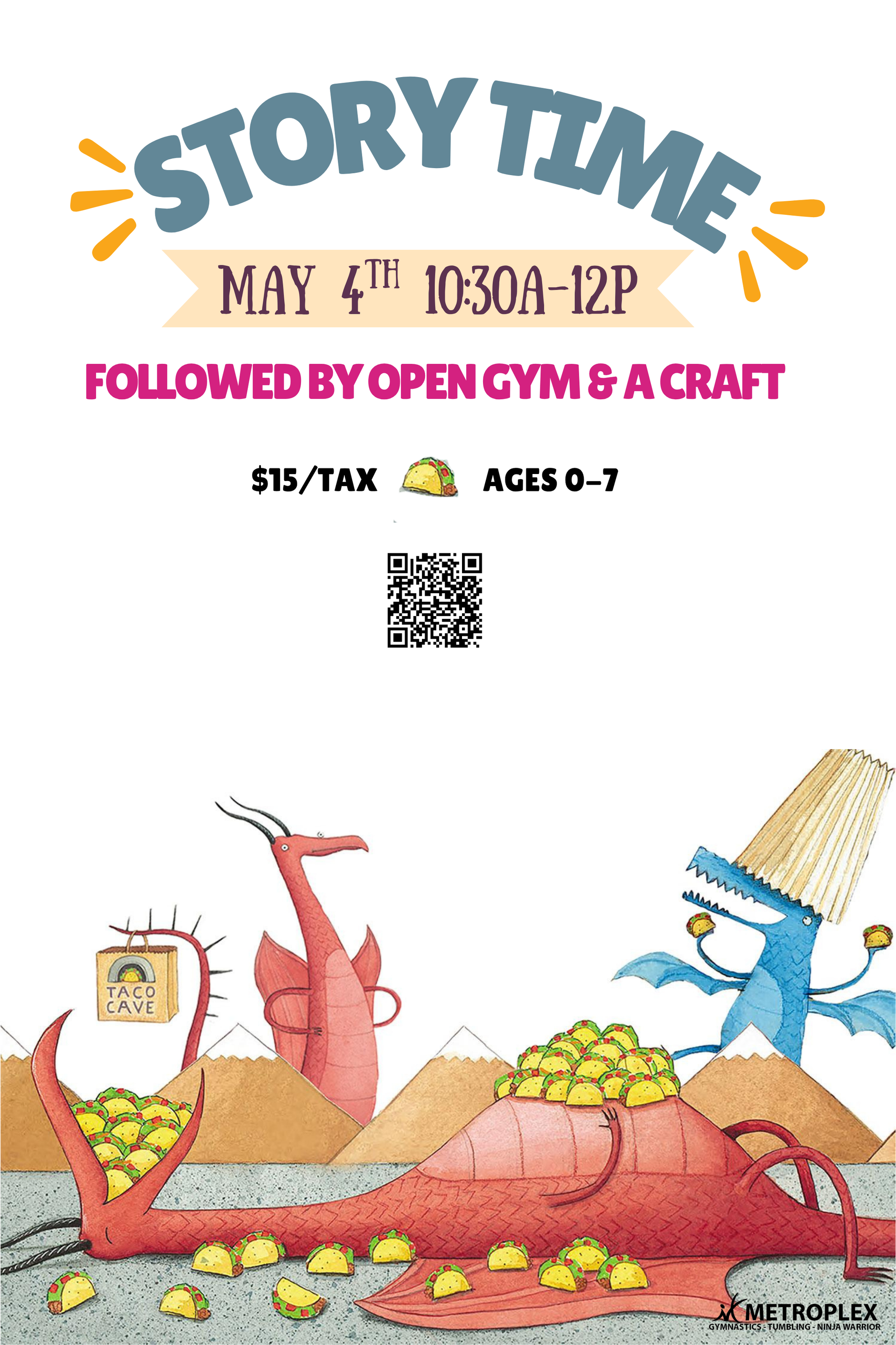 Join us on May 4th for a fun-filled storytime featuring the hilarious Dragons Love Tacos!